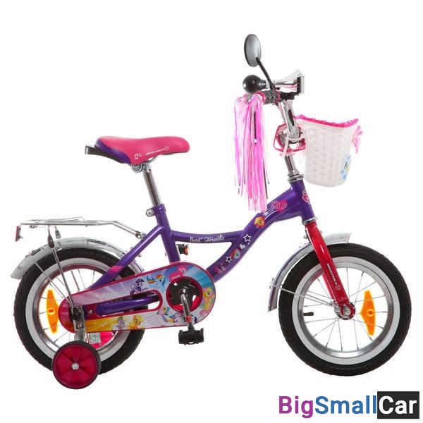 Велосипед 12", My little pony, розовый, передняя корзина, крылья и багажник хром