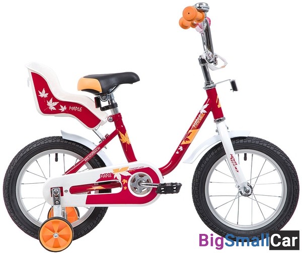 Велосипед NOVATRACK 14" MAPLE, красный, полная защита цепи, тормоз нож, крылья цвет, сидение для кук